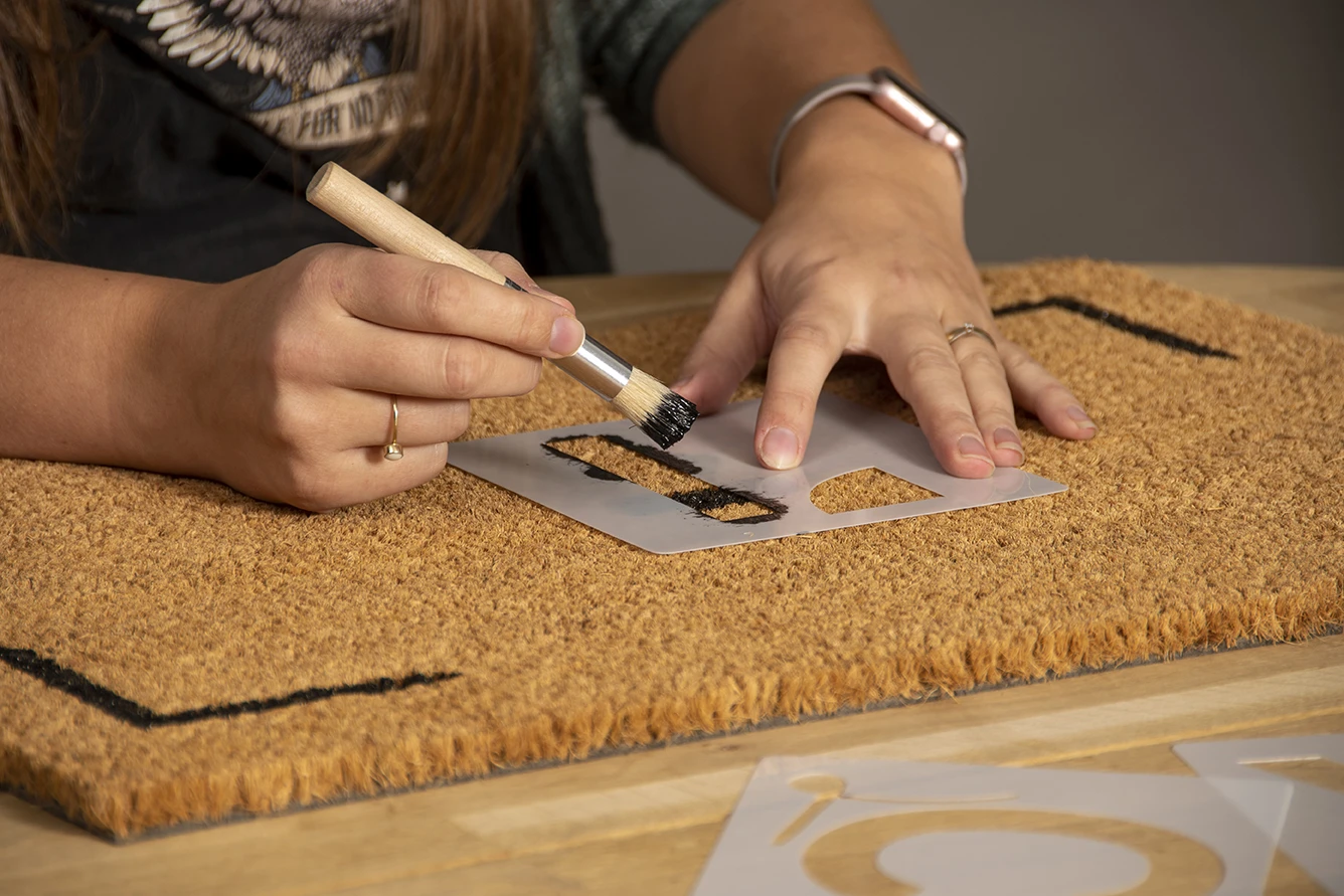 Fleur de entree op met deze kokosmat die u zelf kunt voorzien van letters! U kunt met de meegeleverde letters, verf en de kwast de mat decoreren. De sterke kokosvezels zijn ideaal om de zolen van schoenen en laarzen schoon te maken. De mat blijft op zijn plaats dankzij de pvc-rug waardoor uw veilig uw schoenen kunt vegen.