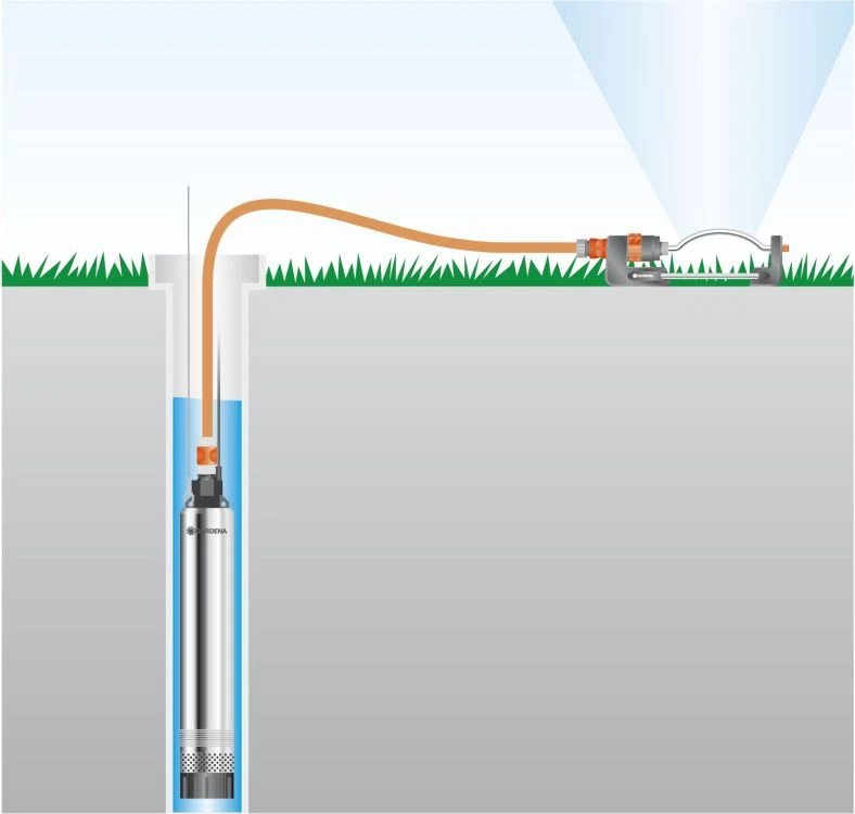 De juiste pomp voor diep uitgeboorde of ingedreven bronnen met smalle diameters vanaf 10 cm. De pomp pompt water op tot een maximale diepte van 19 meter – ook bij langdurige onderdompeling – bijvoorbeeld voor het besproeien van uw tuin.