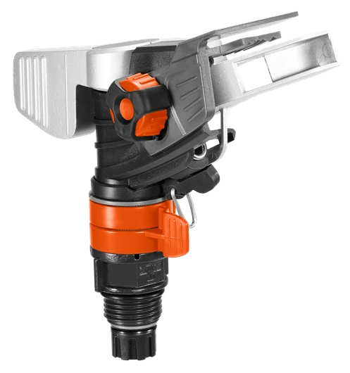De sproeierkop voor grote oppervlakken. De pulserende sector- en cirkelsproeier kan eenvoudig op een statief of een waterleiding worden geschroefd. De sproeier is gemaakt van een robuuste combinatie van metaal en kunststof. U kunt het bereik instellen met de grote, eenvoudig te gebruiken draaiknop. Dit kan worden ingesteld van 5 m tot maximaal 12,5 m. Er kan een oppervlak van 75 m² tot maximaal 490 m2 worden besproeid.