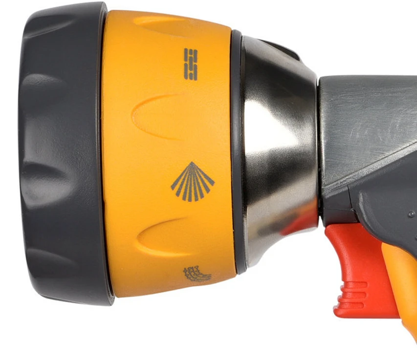 De Hozelock Broes Ultramax is een super degelijke broes met een volledig metalen frame en soft touch rubber coacting. De broes is voorzien van een vergrendelbare trigger met variabele waterdosering en afzonderlijke doorstroomregeling. De broes heeft zeven sproeistanden: jet, kegel, snelvul, waaier, nevel, broes en perlator. Door de soft touch rubber coacting heeft u een goeie grip.
