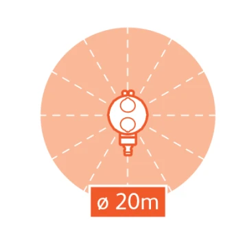 De Hozelock Turbine Cirkelsproeier PRO 2 in 1 op slede sproeit oppervlaktes tot 314 m²! Dit is een diameter van 20 meter. De motor van deze sproeier wordt aangedreven door water. Deze sproeier heeft twee sproeistanden, 1 fijne nevel stand voor zaadjes en jonge planten en 1 stand met waterstraal voor het gazon en grotere planten.