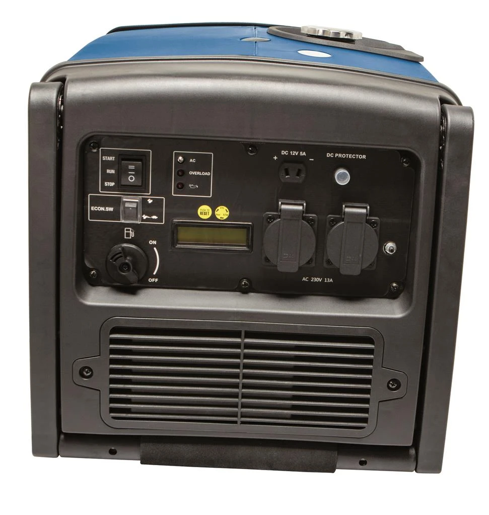 Deze Scheppach stroomgenerator is op afstand aan en uit te zetten met de afstandsbediening. Hij is gemakkelijk te verplaatsen door de wielen.