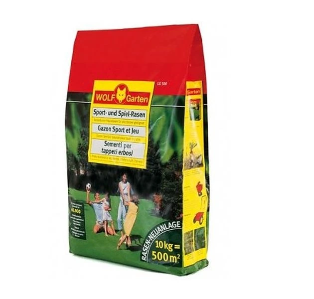 Het Sport en Speelgazon LG 500 van het merk Wolf Garten is ideaal voor het aanleggen van een gazon waar intensief gebruik van gemaakt wordt. Het snelle ontkiemen van het graszaad zorgt ervoor dat het gazon snel klaar is voor gebruik. Dit graszaad groeit op alle bodemsoorten. Toepassing in de maanden April – Oktober.